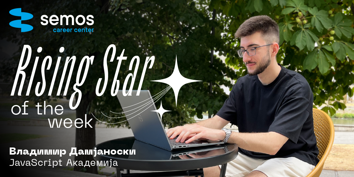 Денес, Владимир гледа на ИТ-индустријата не со страв, туку со јасна слика и солидна подготовка – благодарение на интензивниот, практичен и современ пристап на JavaScript Академијата во Семос Едукација